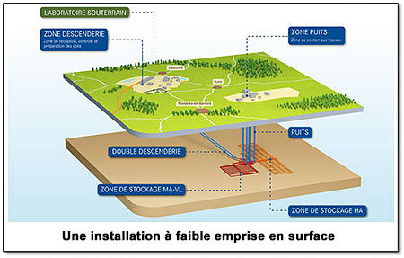 Les déchets sont ainsi mis sans surveillance à l’abri de toute perturbation environnementale ou météorologique, sociétale et de malveillance, ce qui ne serait pas le cas si le stockage était établi en surface.