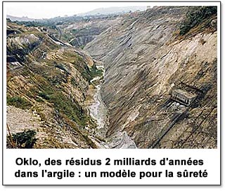 On a en effet découvert qu’au Gabon, à Oklo, des réacteurs nucléaires naturels tout à fait analogues à ceux qui sont utilisés pour produire de l’électricité s’étaient spontanément amorcés il y a 2 milliards d’années et avaient fonctionné à faible puissance pendant plusieurs centaines de milliers d’années, en produisant des déchets radioactifs restés sur place dans l’argile.