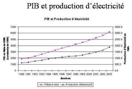 La Chine a connu une augmentation régulière de la production d'électricité sur la période 1990-2001 avec en moyenne une croissance de 7% par an. En 2003, la production d'électricité a atteint environ 1900 TWh, ce qui place la Chine en deuxième position mondiale. La production est d'origine thermique pour 80%, et l'essentiel de cette production est assuré par l'utilisation du charbon, avec une faible part de pétrole et de gaz. L'hydraulique représente la deuxième source avec 18,8% de l'électricité produite. Ce pourcentage est en deçà des possibilités offertes pour les ressources hydrauliques nationales estimées à 378 GW, puisque seulement 25% du potentiel techniquement exploitable serait actuellement utilisé.