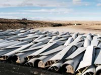 La durée de vie est courte, inférieure à 25 ans (40 à 80 ans pour un réacteur nucléaire). Il n'y a pas encore de filière de recyclage pour les pales en fibre de carbone (actuellement enterrées aux USA, le problème va bientôt se poser en Allemagne).