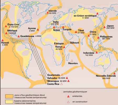 L’énergie géothermique est bien répartie dans le monde (voir schéma ci-dessus).