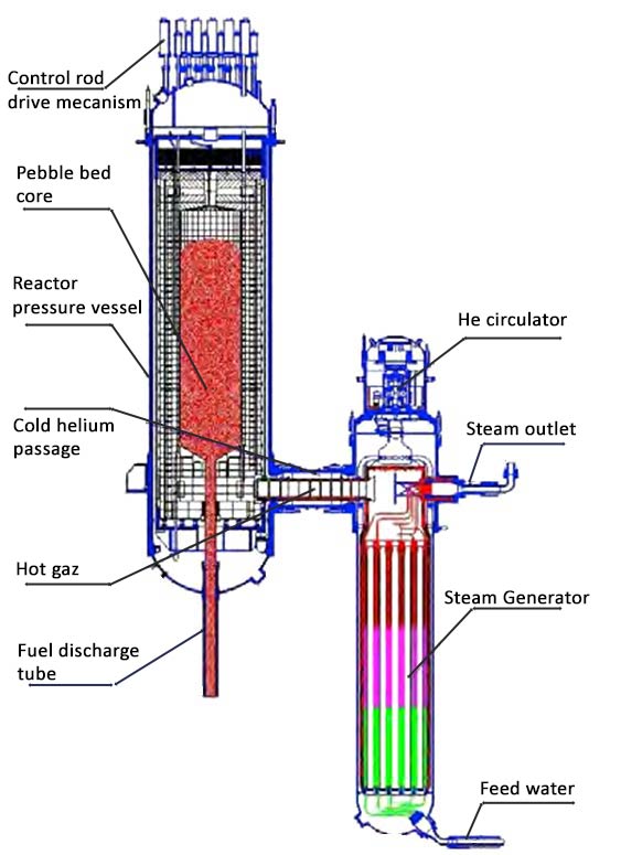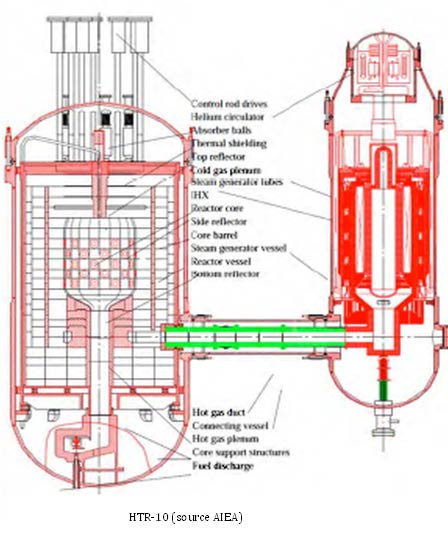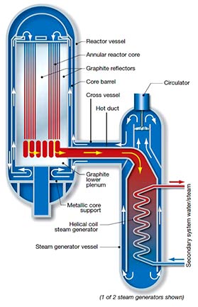 Il s’agit, cette fois encore, d’un réacteur haute température, refroidi à l’hélium, utilisant le graphite comme modérateur.