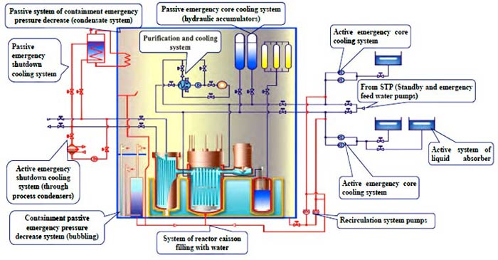 Du point de vue de la sûreté, le réacteur est conçu pour fonctionner automatiquement, et est équipé de systèmes passifs d’injection de sécurité et d’évacuation de la puissance résiduelle.