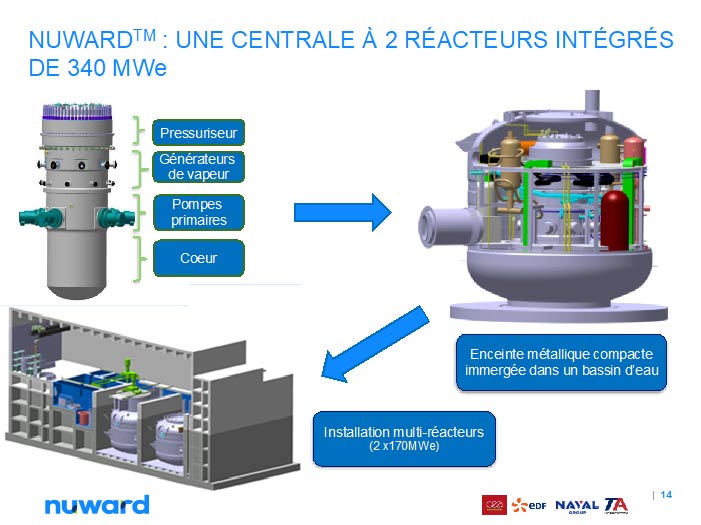 Le projet NuWard comprend 2 modules de 170 MWe chacun, soit une puissance totale de 340 MWe (540 MWth), avec une seule salle de commande.