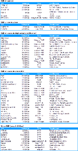 Nous ne mentionnons ici, que 7 SMR, dont 3 déjà en service, 3 en cours d’élaboration ou de construction et le projet de Framatome-Inc et GE aux États-Unis, en cours de définition, qui se distingue significativement des autres projets.